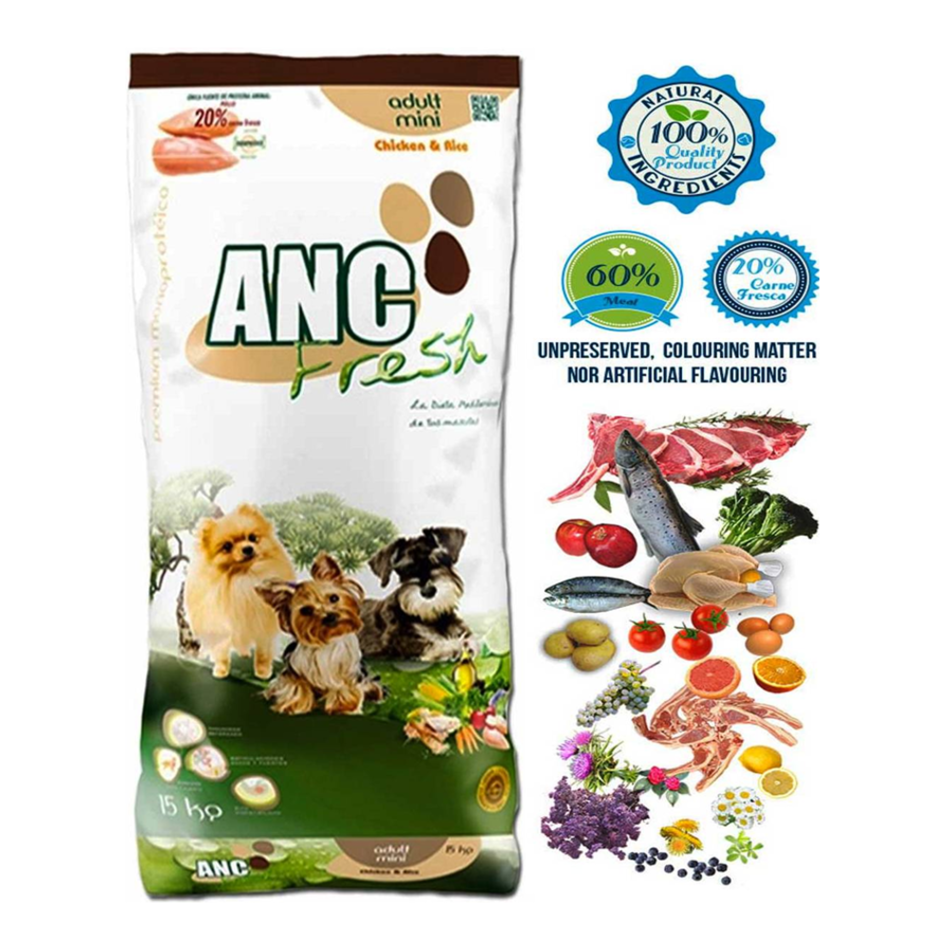 בשר עוף מיובש, בשר עוף טרי 20% אורז 15%, חיטה, תירס, שומן עופות, שעורה, הידרוליזת כבד עופות, אפונה 2.5%, עיסת סלק 3%, שמרים 1% (מקור MOS), 0.5% גזר מיובש, 0.5% תפוח מיובש, זרעי פשתן, 0.3% שמן זית, 0.2% עולש (מקור FOS), מינרלים וויטמינים